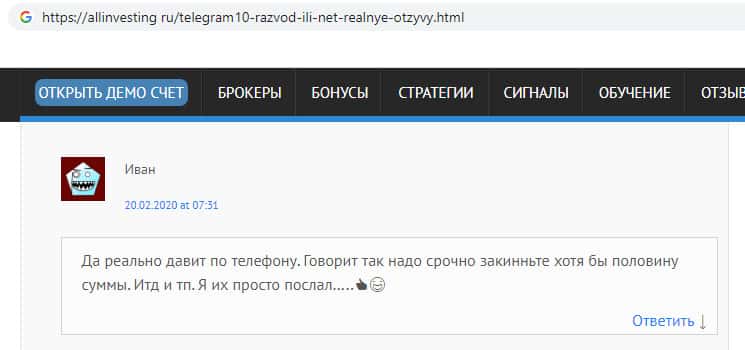 Сайт allinvesting ru провёрл расследование конторы кидал Telegram10 Ru