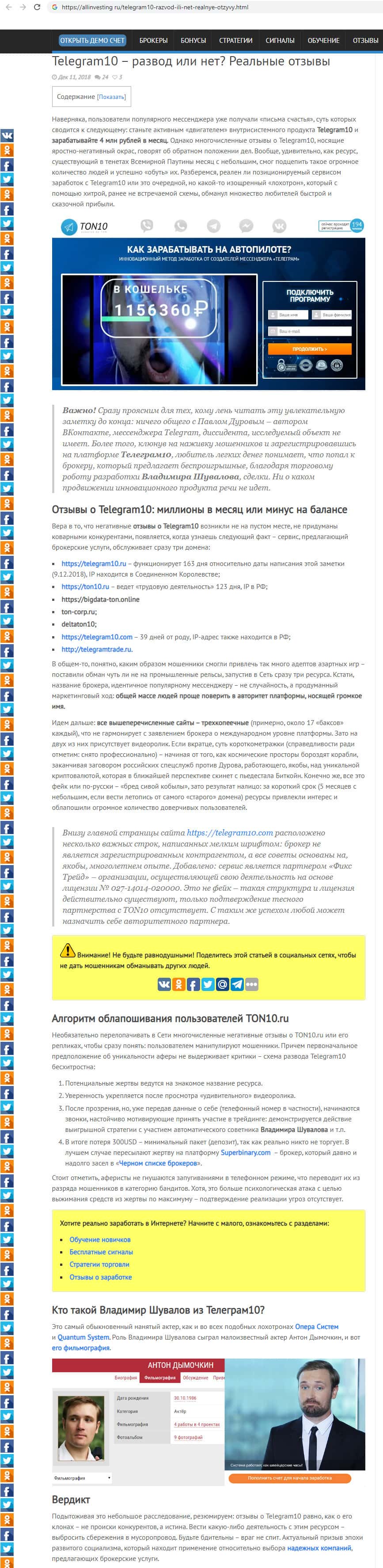 allinvesting ru - информация о финансовых жулликах Telegram10 Ru