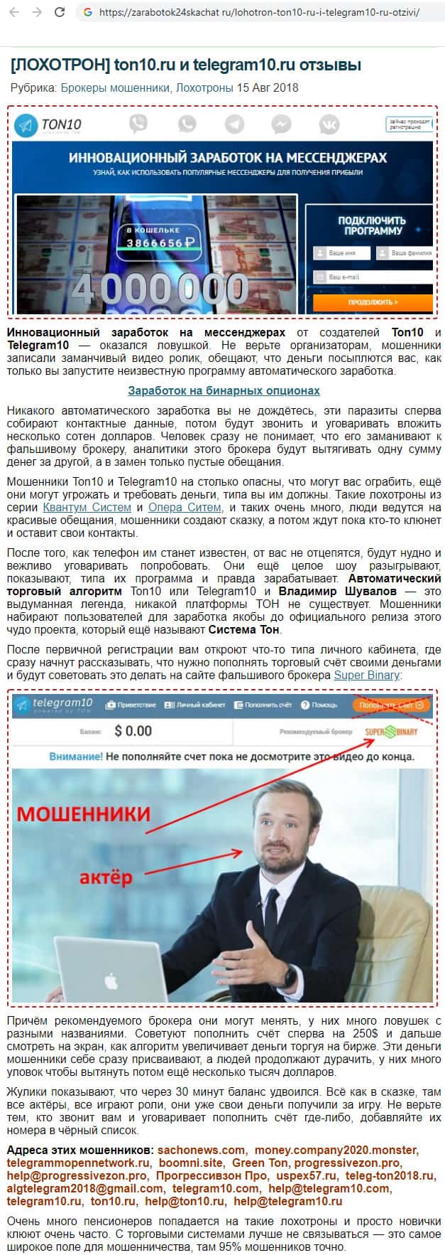 - Мошенники ТОN10 и Телеграм 10 - родственные лохотроны
