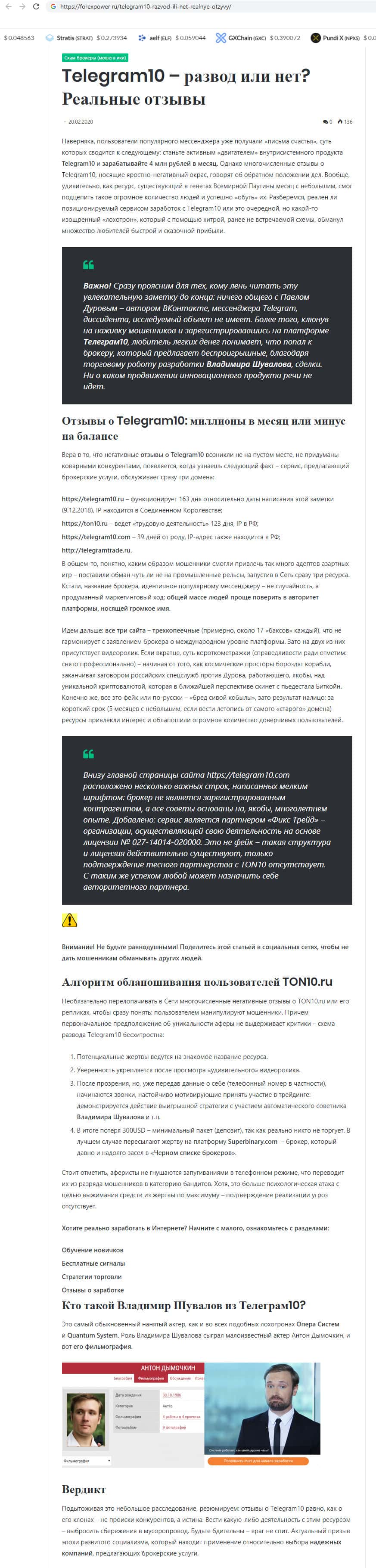 forexpower ru - информация о шарашкиной конторе Telegram10 Ru