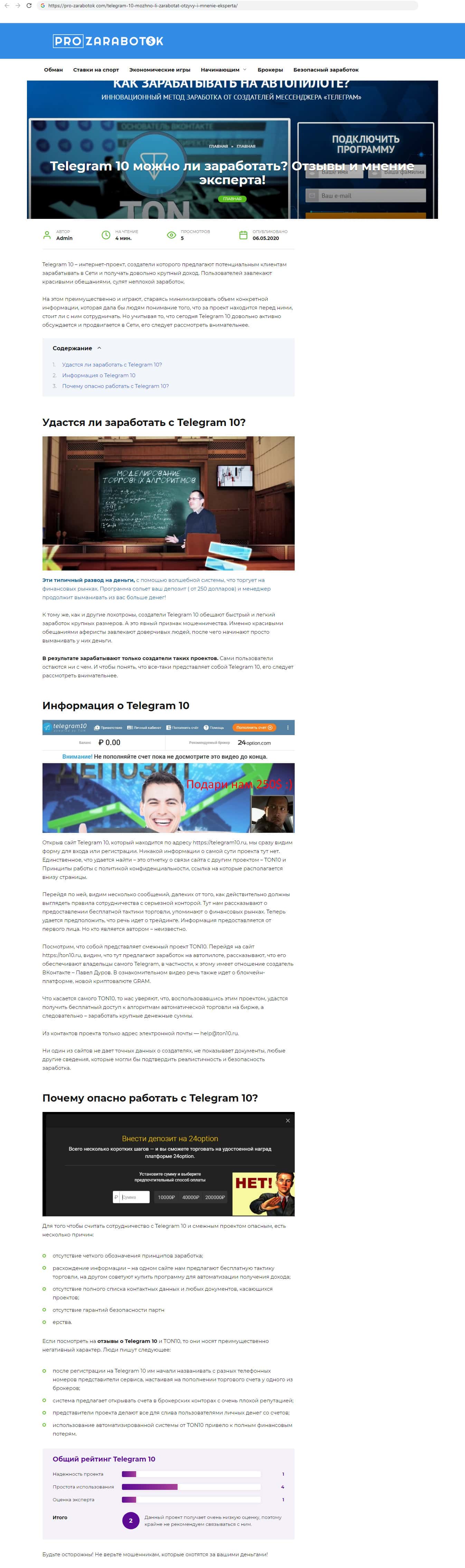 Оценка финансовых аферистов Telegram10 Ru сайтом pro-zarabotok com