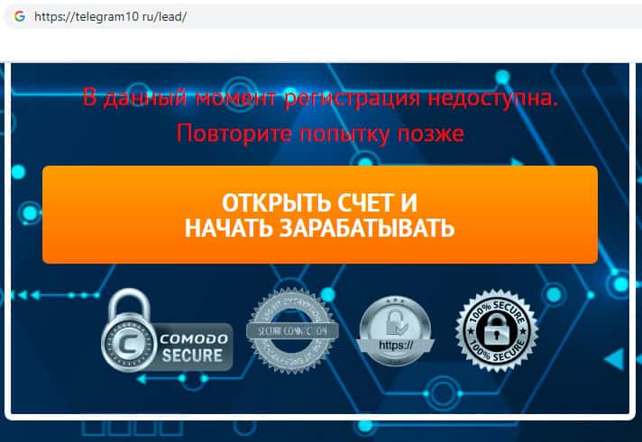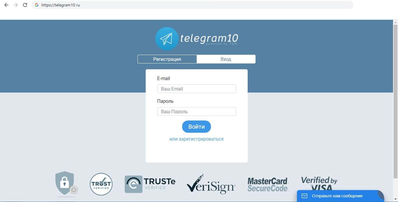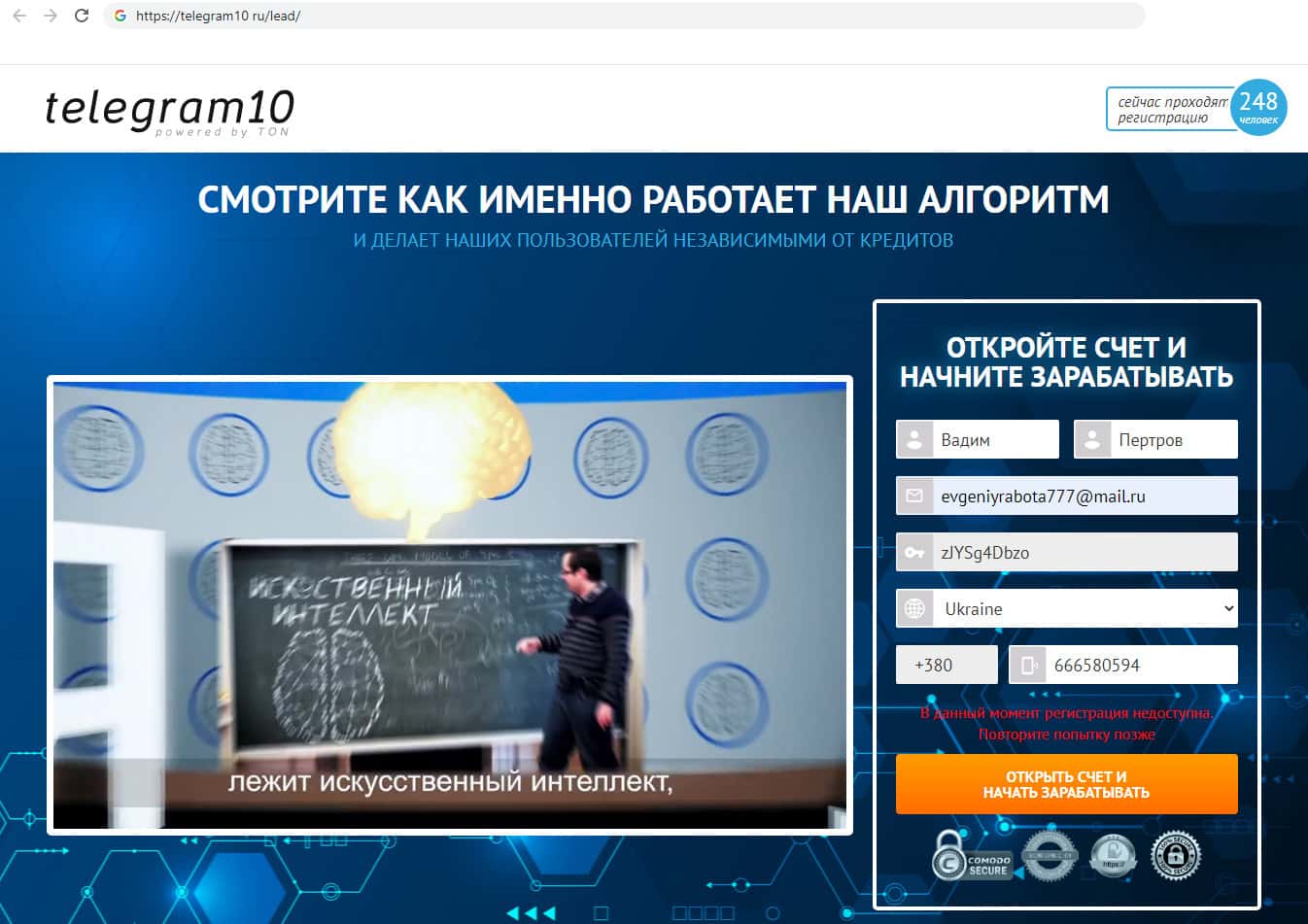 Регистрация в проекте финансовых аферистов Telegram10 Ru