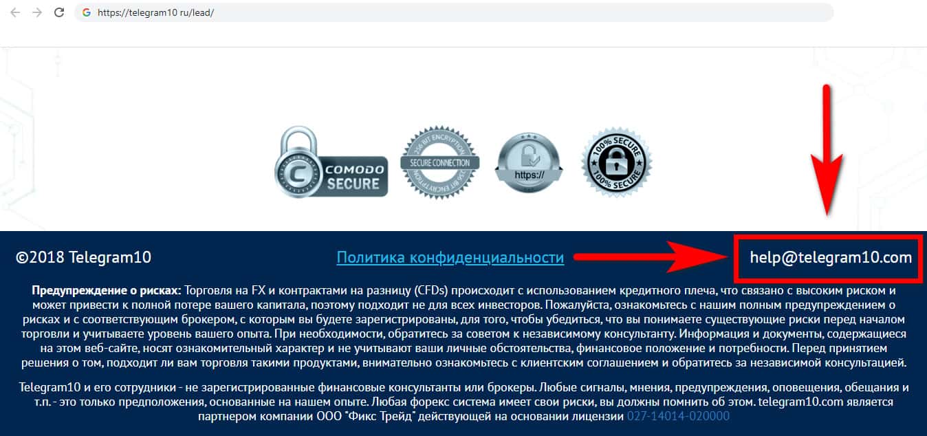 У финансовых аферистов Telegram10 Ru нет клиентского соглашения