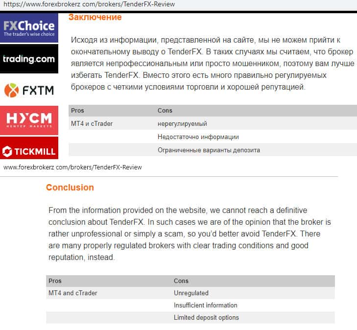 По словам автора статьи про кухню TenderFX, он не может прийти к окончательному выводу касательно принятия решения о пользовании их услугами. Он указывает, что контора Тендер ФХ является непрофессиональным брокером, а именно мошеннической организацией. Нет не регуляции, ни достаточной информации об услугах, а также есть ограниченные варианты депозита.