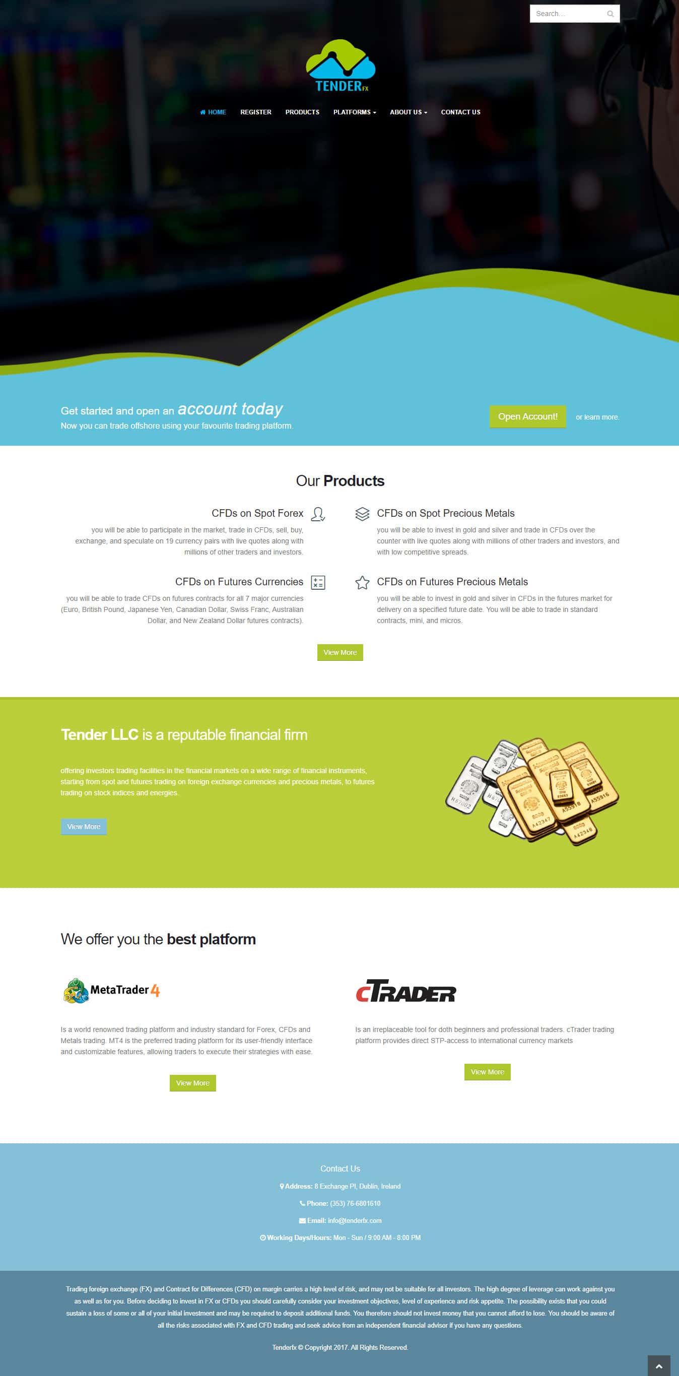 TenderFX - очередная форекс-контора, которая занимается кидаловом наивных клиентов, путем предоставления фейковой торговли на форекс-рынке. Аферисты работают по старым схемам, используя кухонные методы слива счетов клиентов с помощью торговой платформы MetaTrader4. Мы настоятельно не рекомендуем с ними связываться.