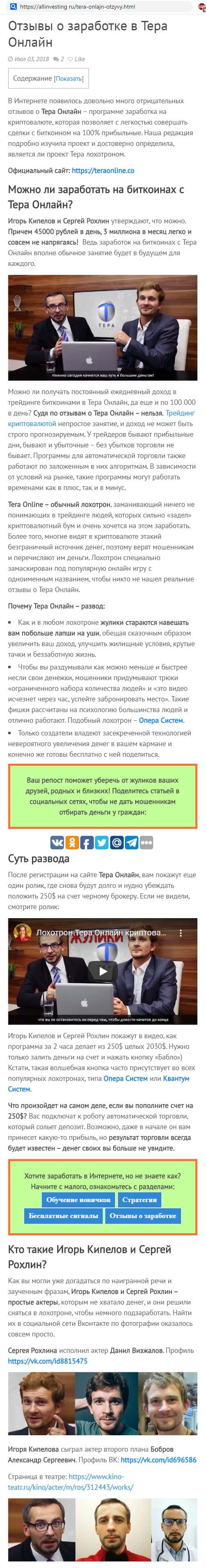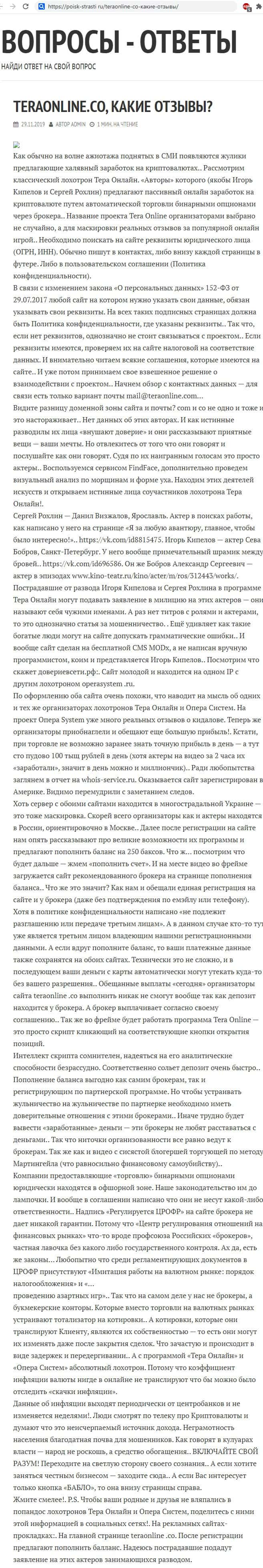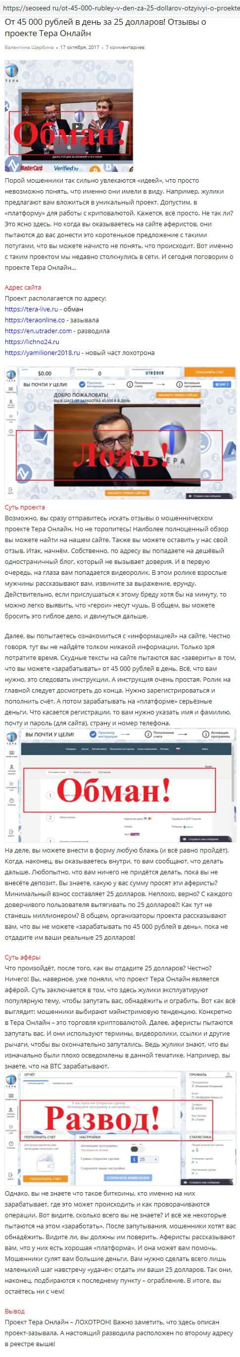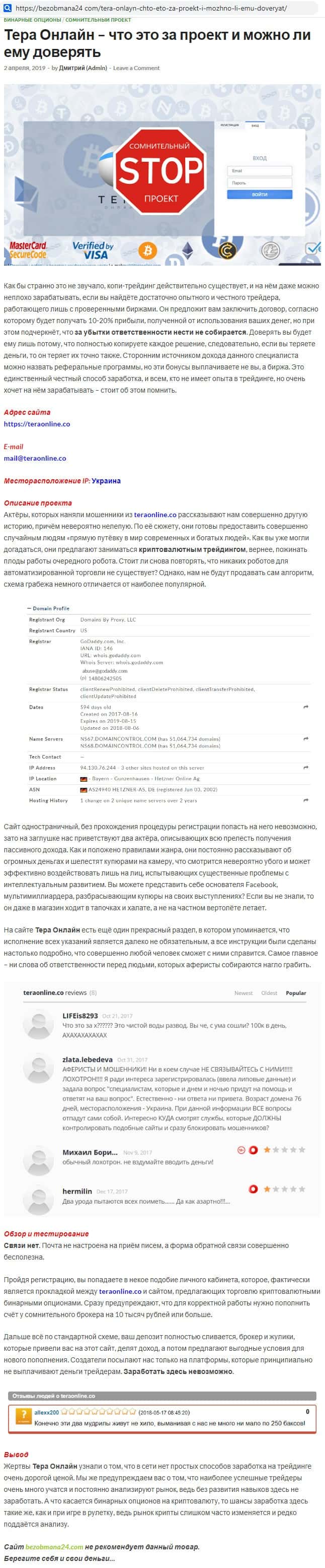 Обзоры и статьи в Интернете о мошеннической компании Тера Онлайн Ко