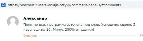 Трейдер в своем отзыве на сайте boexpert ru раскрыл, что торговая платформа Тера Онлайн Ко запрограммирована не на получение прибыли, а на слив денег.