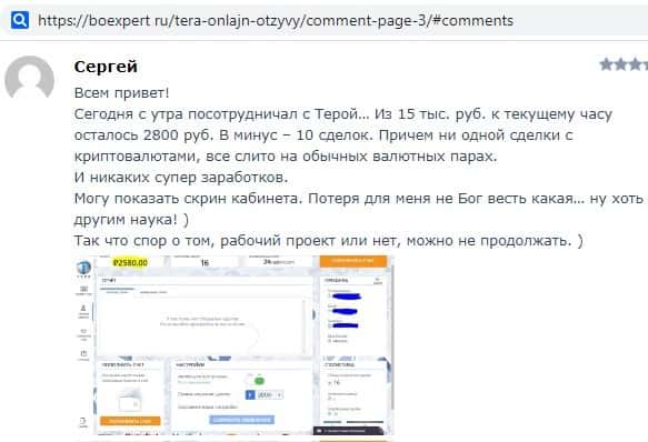 Из отзыва трейдера на сайте boexpert ru следует, что, если бы не отзывы в Интернете о компании TeraOnline Co, мошенники развели бы на деньги.