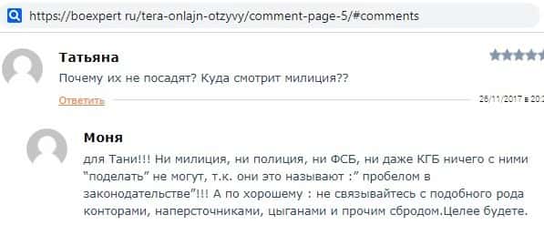 Трейдер в отзыве на boexpert ru задается возмущенным вопросом, - почему правоохранительные органы смотрят сквозь пальцы на деятельность Тера Онлайн Ко?