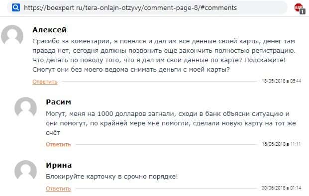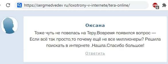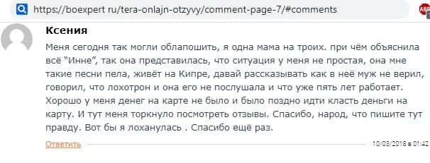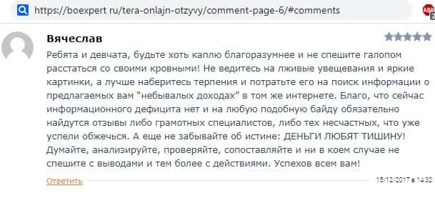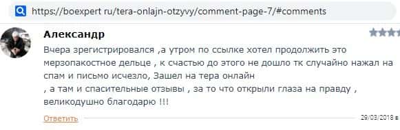 Трейдер в своем отзыве на сайте boexpert ru сообщает, что он был готов уже попасться на удочку мошенников Тера Онлайн Ко, если бы не отзывы в Интернете.
