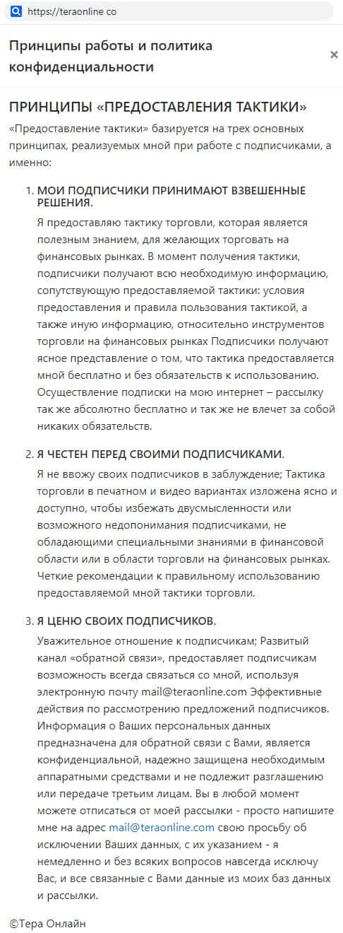 По мнению автора обзора с аналитического сайта boexpert ru, компания-поставщик торговых сигналов на финансовых рынках TeraOnline Co является обыкновенным лохотроном.