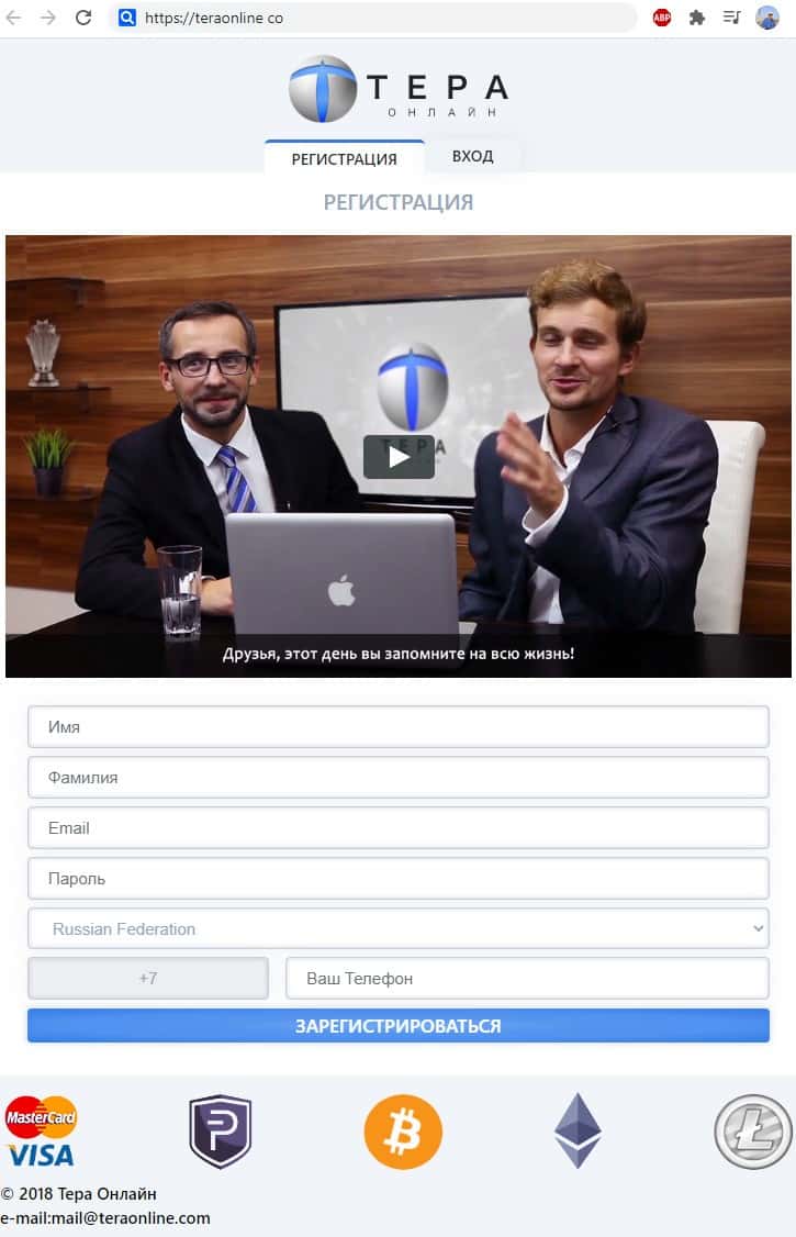 teraonline co - официальный сайт сомнительной компании Тера Онлайн Ко