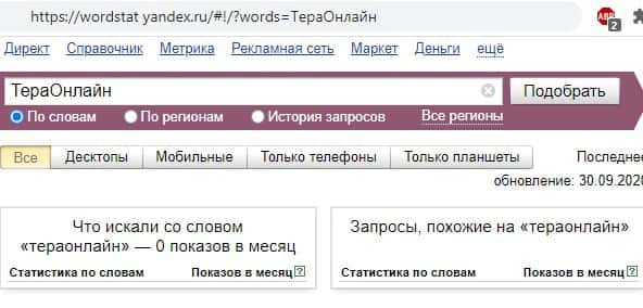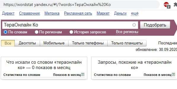 Поисковых запросов по русскоязычному бренду "ТераОнлайн" без пробела на сайте wordstat yandex ru не выявлено.