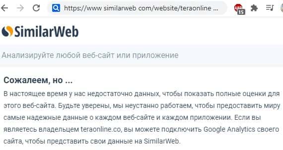 Аналитический сервис similarweb com, изучив трафик мошеннической компании TeraOnline Co, сообщает, что недостаточно данных для определенных выводов.