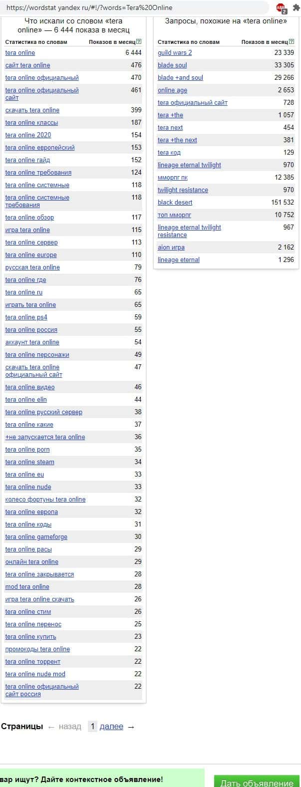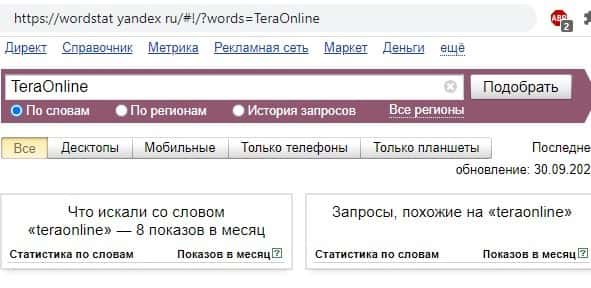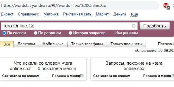 Поисковых запросов по англоязычному бренду "Tera Online" с пробелом на сайте Яндекс Вордстат найдено 6444 случая, но многие запросы касались одноименного игрового портала.