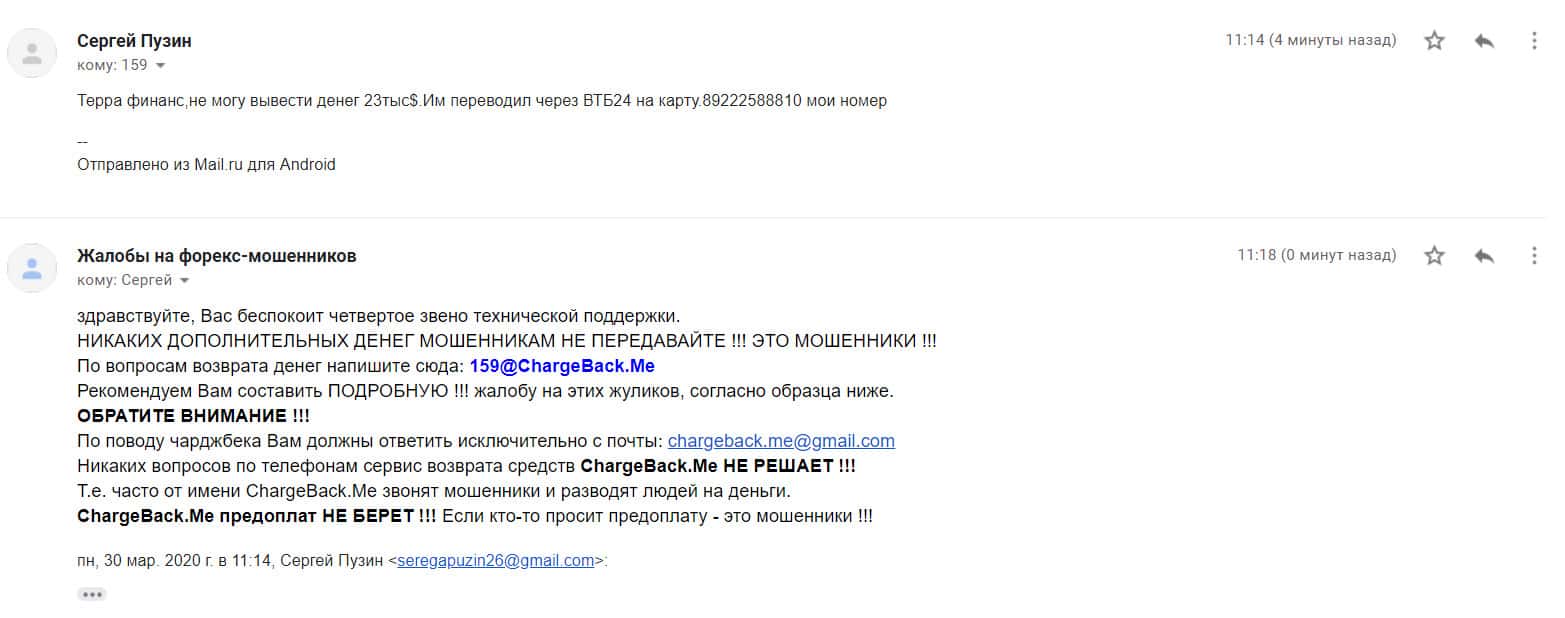 - Жалоба на аферистов TerraFinance от очередного пострадавшего пользователя сети Интернет