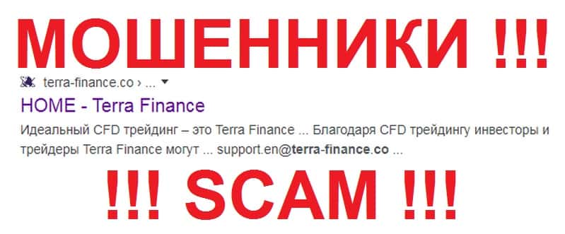 На веб-сайте безобмана24 ком замечен отзыв некого Сергея, который закинул на торговые счет скам-конторы TerraFinance Co 250 долларов и через некоторое время убедился в том, что данная брокерская контора - жулики, а вложенные денежные средства вернуть уж точно не получится. Учитесь на чужих ошибках и не связывайтесь с аферистами Терра Финанс !!!