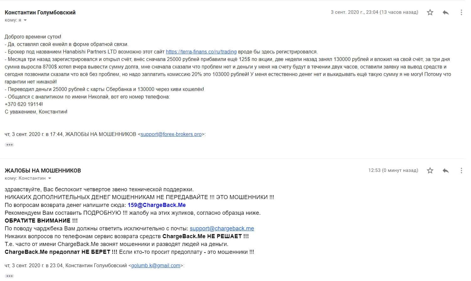 В данном разделе опубликован информационный материал в виде жалобы на мошенническую брокерскую организацию TerraFinance Co, которая лишила человека 155 тысяч рублей.