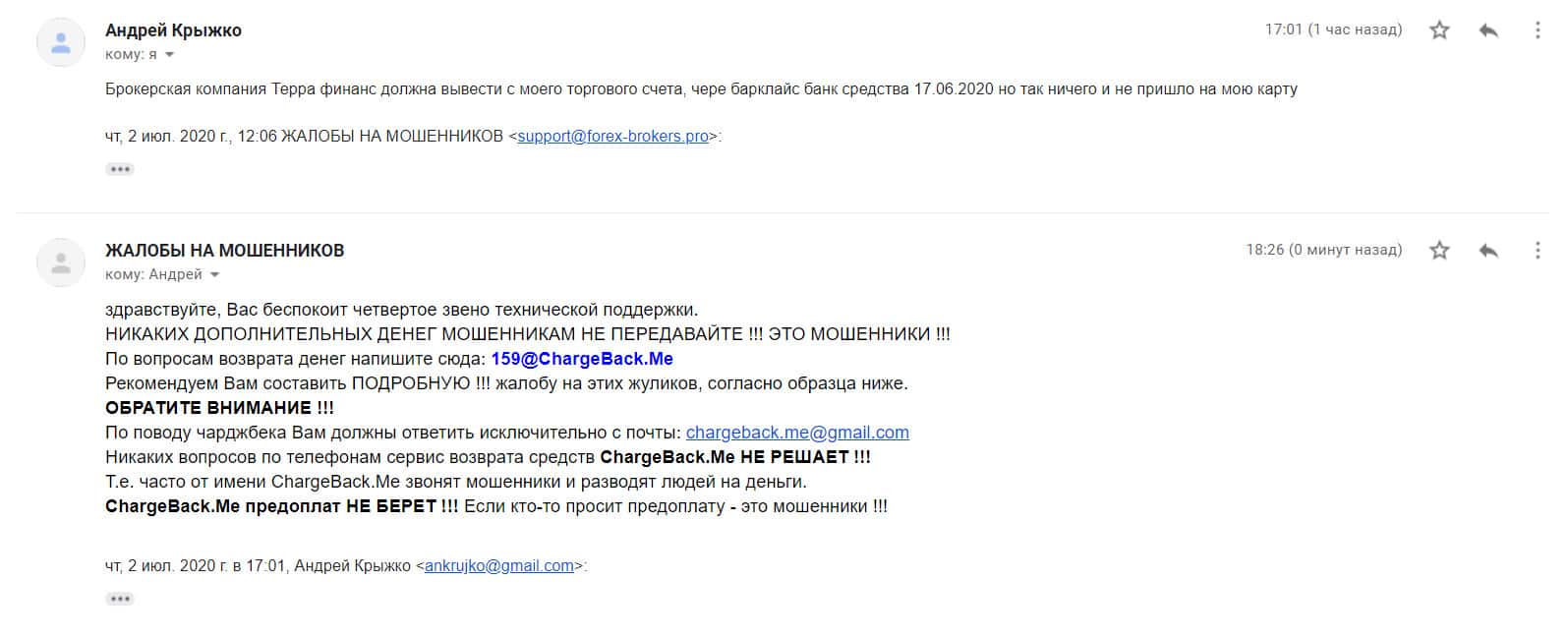 - Сказки о возврате денежных средств на сайте брокерской шараги Терра Финанс
