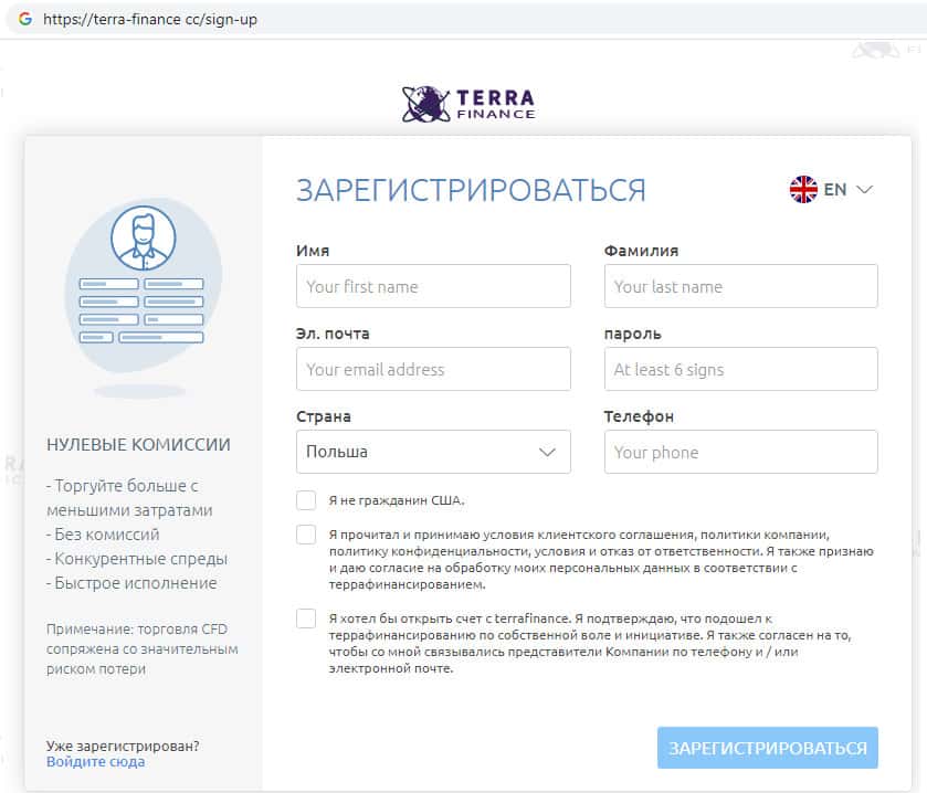 - Сказки о простоте регистрации на сайте брокерской конторы Терра Финанс