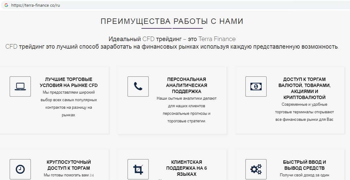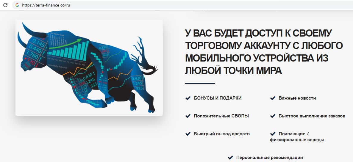 - Сайт брокерской конторы Терра Финанс разработан для выманивания денег у людей