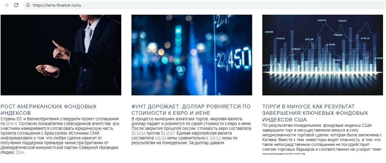 - Новости о финансовом рынке на сайте мошеннической организации TerraFinance Co