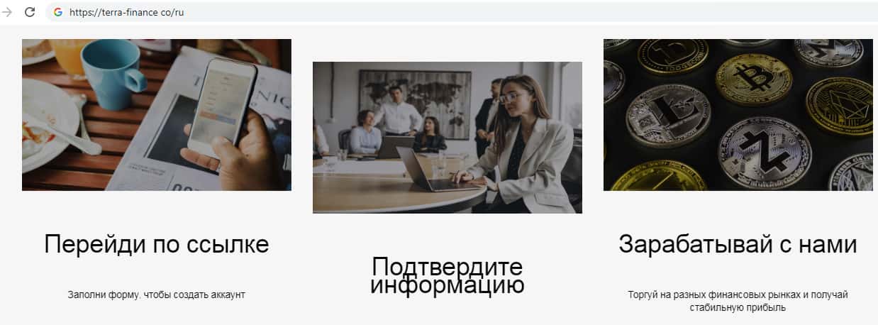 Сайт брокерской конторы Терра Финанс разработан для выманивания денег у людей