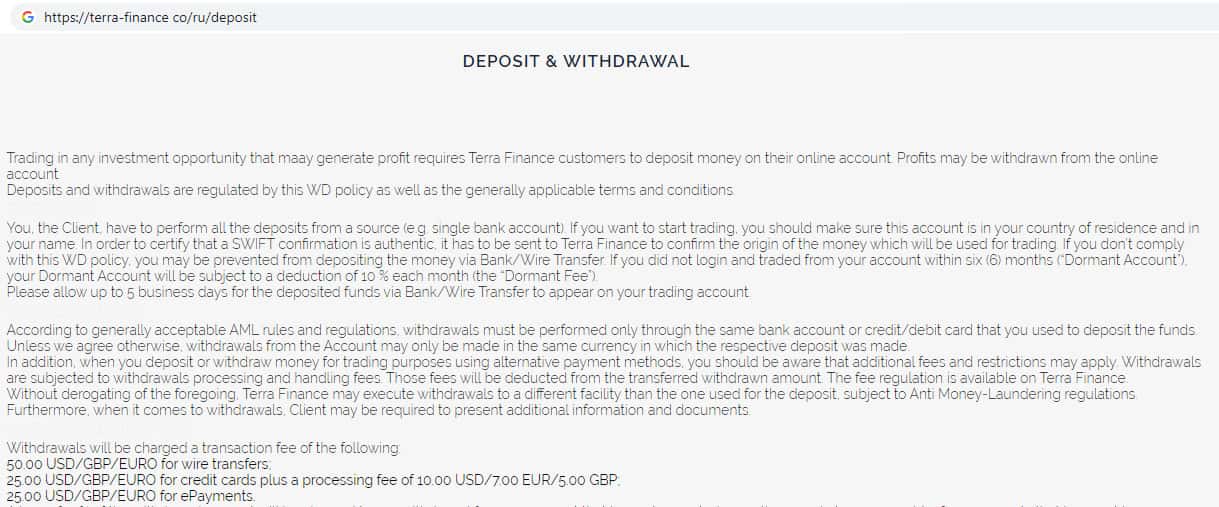 - Правила вывода денежных средств с торгового счета TerraFinance Co