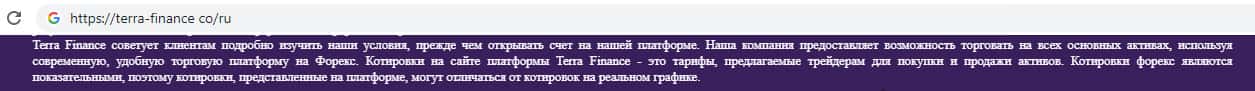 - Отказ от ответственности на сайте скам-брокерской конторы TerraFinance Co