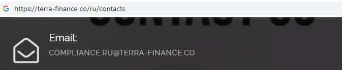 - адрес электронной почты брокерской конторы Терра Финанс: COMPLIANCE RU@TERRA-FINANCE CO