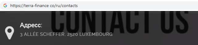 Согласно контактной информации, которую указывает о себе мошенническая организация Терра Финанс зарегистрирована в Люксембурге. Где ныне базируется огромное количество аналогичных скам-брокерских компаний.
