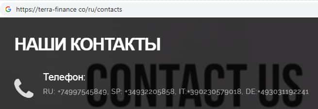 - Контактная информация мошеннической организации TerraFinance Co