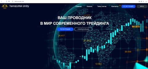 В данном разделе предлагаем увидеть скрин главной веб-страницы онлайн-ресурса скам-брокера Терра Луна Юнити, помните о том, что такие проекты очень быстро скамятся.