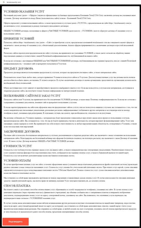 Клиентское соглашение на веб-сервисе аферистов TerraLunaUnity