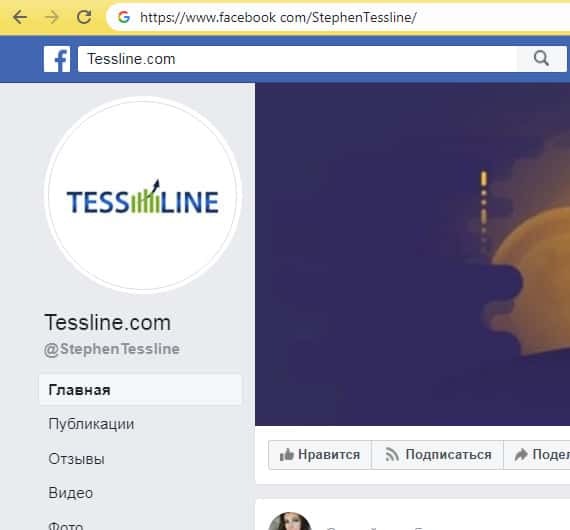 Далее была найдена страница наглых мошенников Тесс Лайн в социальной сети Фейсбук, на которой аферисты пытались выкладывать новости или левую информацию о своем "шикарном" сайте и постоянно прибыльной работе. Но по факту видим, что привело это все к скаму и простому банальному сливу конторы.