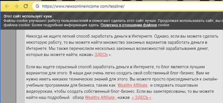 При переходе на официальный сайт мошенников успеха добиться не удастся, так как шулера Тесс Лайн нагло слились после волны многочисленных разводов своих наивных пользователей на деньги и продали свой сайт, что вы можете увидеть на изображении, расположенном ниже.