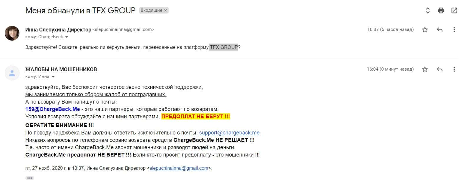 По поводу попытки получить вложенные средства от МОШЕННИКОВ ТФХ Групп - пишите письмо сюда [email protected]