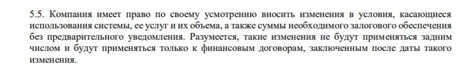 Пункт 5.5 договора брокерской компании TFX Group сообщает клиенту, что организация может в любое время изменить условия настоящего договора.