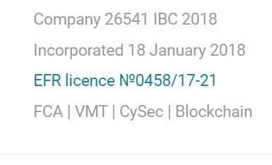 Мошенники ТФХ Групп пишут у себя на сайте, что якобы имеют лицензию за номером EFR licence №0458/17-21. Однако, скрина документа на сайте нет, значит, его не существует.