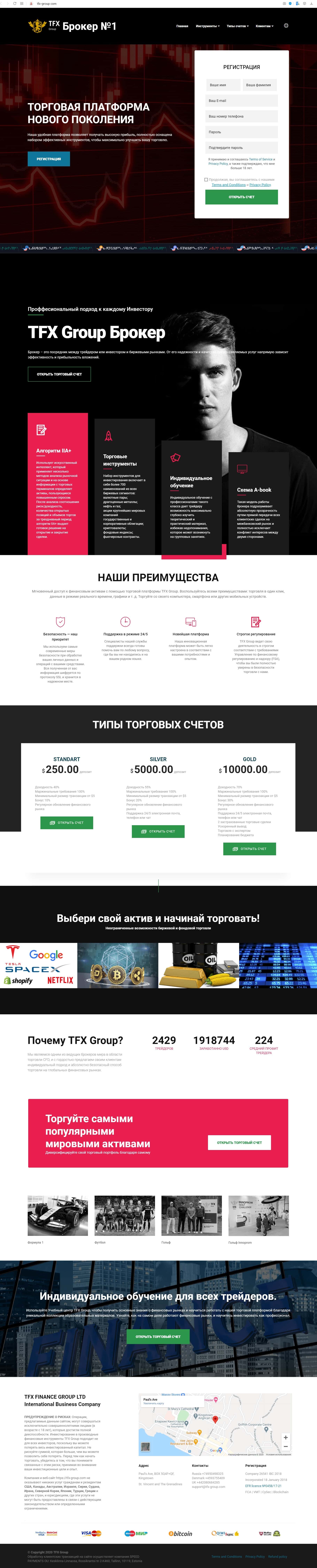 На ресурсе брокера TFX Group имеется адрес регистрации на островах Сент-Винсент и Гренадины. Но эта информация не поможет российским клиентам в случае потери их средств.