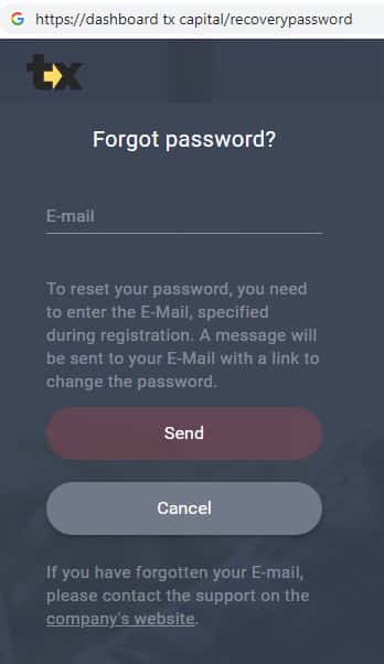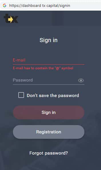Ваши личные данные на сайте жульнической организации TX Capital никак не защищены, поскольку для входа в кабинет необходимо указать только адрес электронной почты и пароль, которые очень легко рассекретить. Ваши личные данные для входа в кабинет всегда хранятся на сайте шулеров ТХ Капитал, которые могут сами слить Ваши денежные средства.