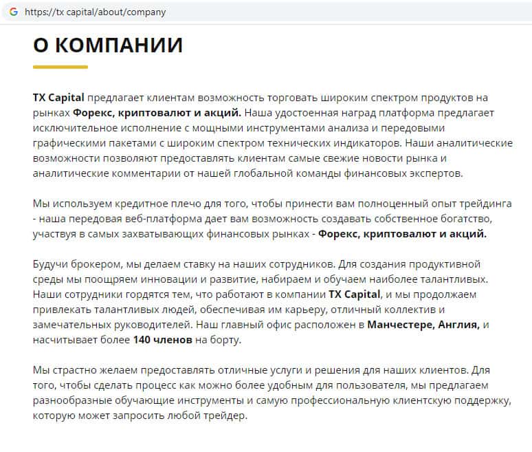 - Интернет-лохотрон TX Capital не ведет никакой брокерской деятельности
