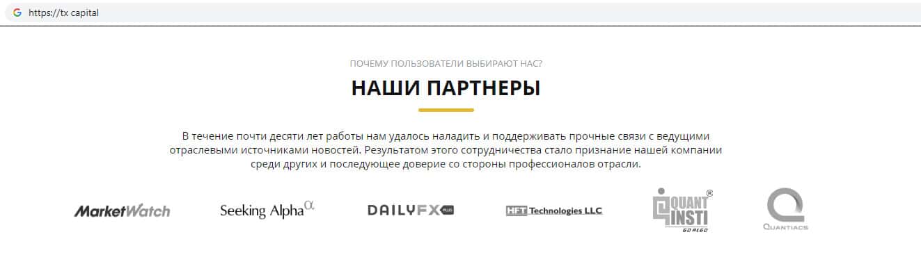 На сайте жульнической конторы TX Capital найдены изображения логотипов компаний, которые не имеют никакого отношения к данной организации. Шулера ТХ Капитал врут о том, что им эти компании доверяют. Вероятнее всего перечисленные организации даже не догадываются об этом.