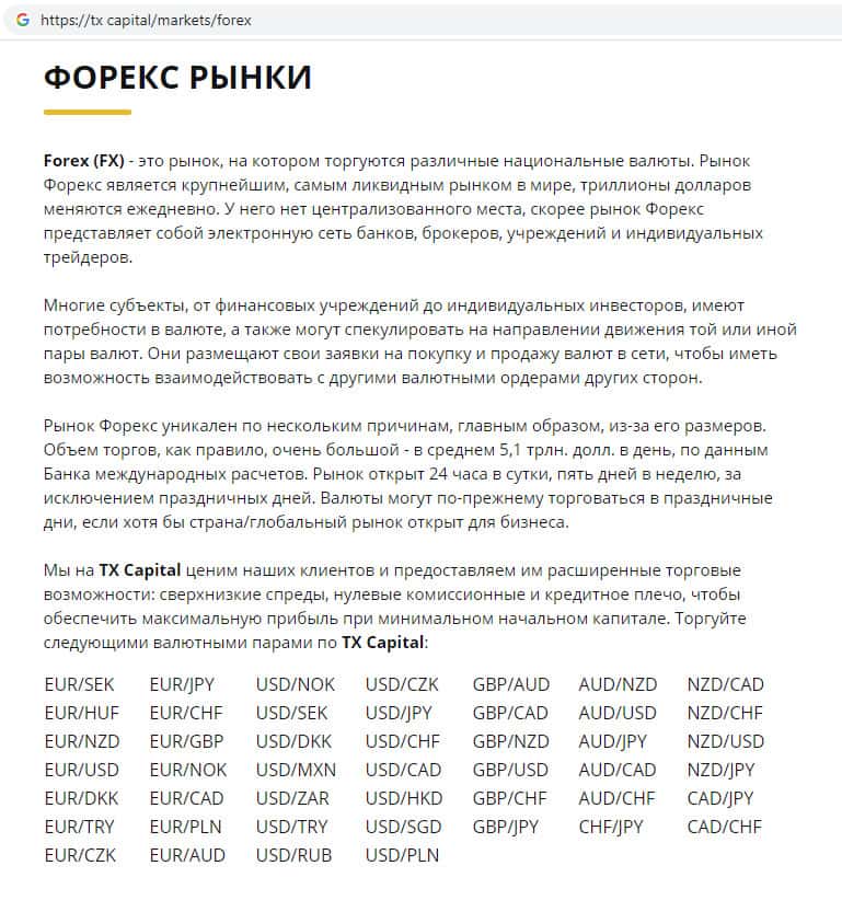 - На сайте аферистов TX Capital не вся информация переводится на русский язык
