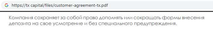 Пользовательское соглашение на интернет-сервисе шулеров ТХ Капитал