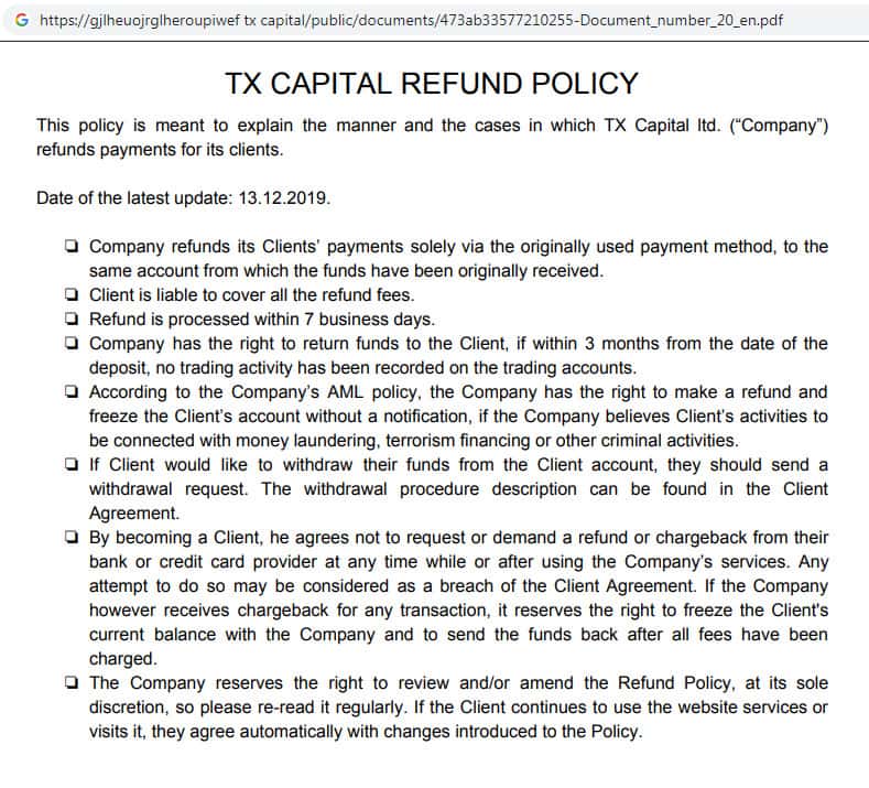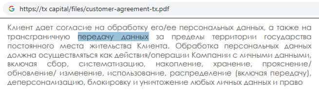На официальном сайте мошенников ТХ Капитал была обнаружена информация о политике конфиденциальности и сохранности личной информации клиента. Практически вся документация на сайте данной скам-конторы полностью на английском языке. Это является признаком того, что TX Capital всего лишь очередной интернет-лохотрон.