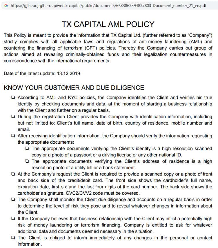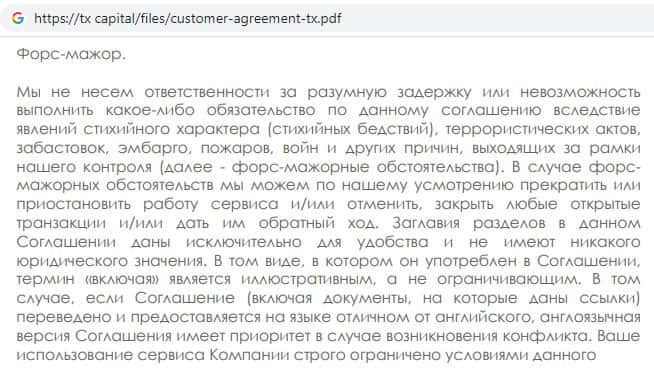 Мошенники ТХ Капитал предоставили документы, которые полностью на английском языке кроме пользовательского соглашения. Не один из этих документов не имеет никакой юридической силы. Поэтому надеяться на то, что компания TX Capital ведет брокерскую деятельность не имеет смысла !!!