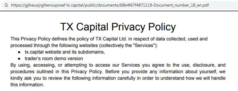 - Политика конфиденциальности псевдо-брокерской конторы TX Capital