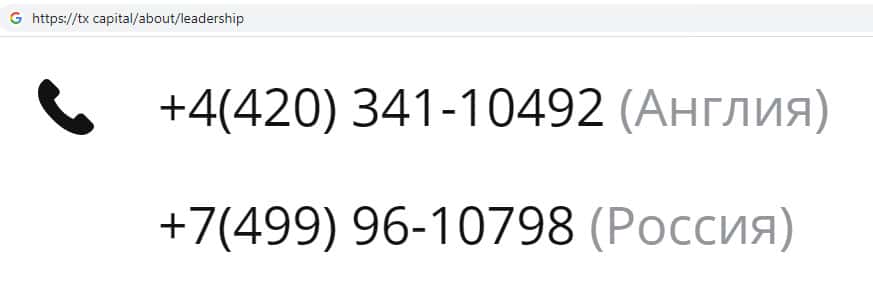 Жульническая организация TX Capital, главный офис которой находится в городе Манчестер, который находится на северо-западе Англии, на своем официальном сайте указала номера контактного телефона своей организации, а так же указывает адрес электронной почты своей конторы, который указан ниже: