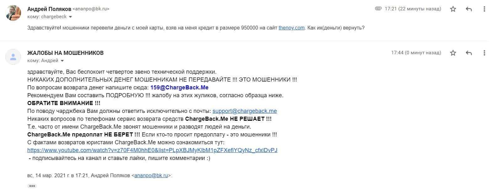 Если мошенники из TheNoy Вас кинули, то тогда обязательно расскажите об этом случае нам. Сообщите Ваш адрес электронного ящика в форме связи ниже, и с Вами установят контакт.